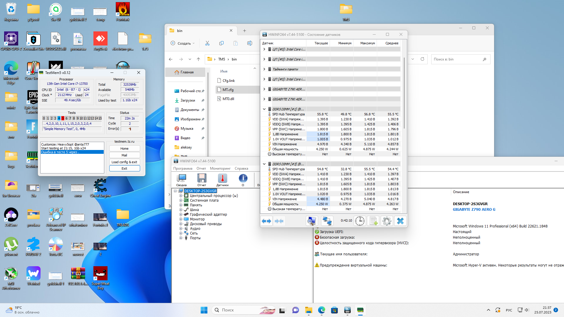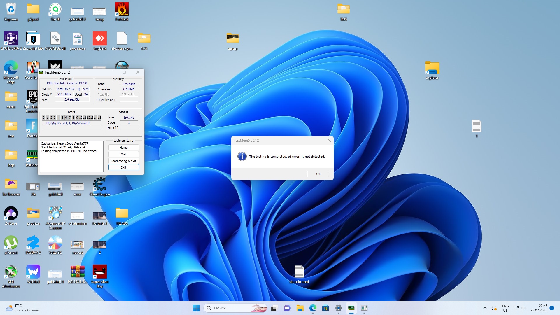 прошел без ошибок memtest light и heavyspot.в первый раз при прохождении heavy spot выдал ошибку в тесте 5.потом поменял Testing Window Size на 1024 и ошибок не было.с чем ошибка может быть связана никакого кода небыло?перегрев?memtest 86plus проходил без ошибок где то 8 часов на ночь оставлял.ddr5 32 gb 2 планки