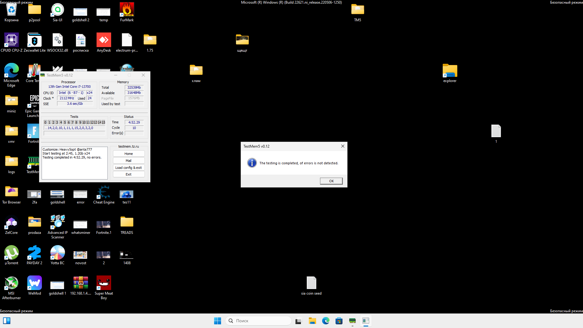 сейчас прошел 10 циклов heavyspot без ошибок testing windows size 1408.в безопасном режиме от администратора.с чем интересно могла быть связана ошибка в обычном режиме?не хватка пямяти?