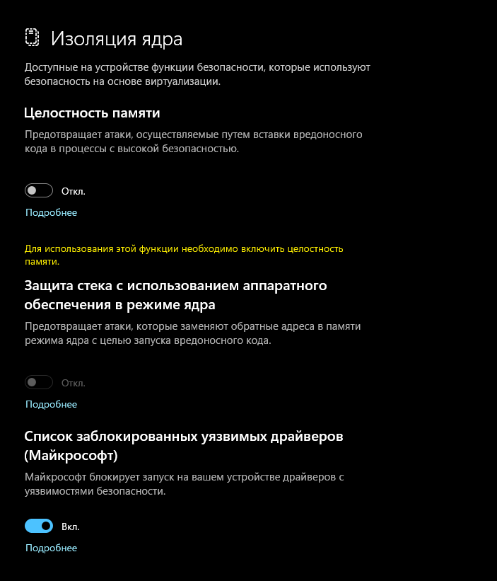 Ну типа только доверенные драйверы могут быть загружены в защищенную область, то есть область траста. Если туда загрузить известный дырявый драйвер, то получается троянский конь в траст зоне. Мне так пришлось выкинуть X-FI карту их пеки, потому что креатив болт положила на подписание своих дров и дрова без подписи не могут попасть в траст зону и мемори интегрити тупо не включается.