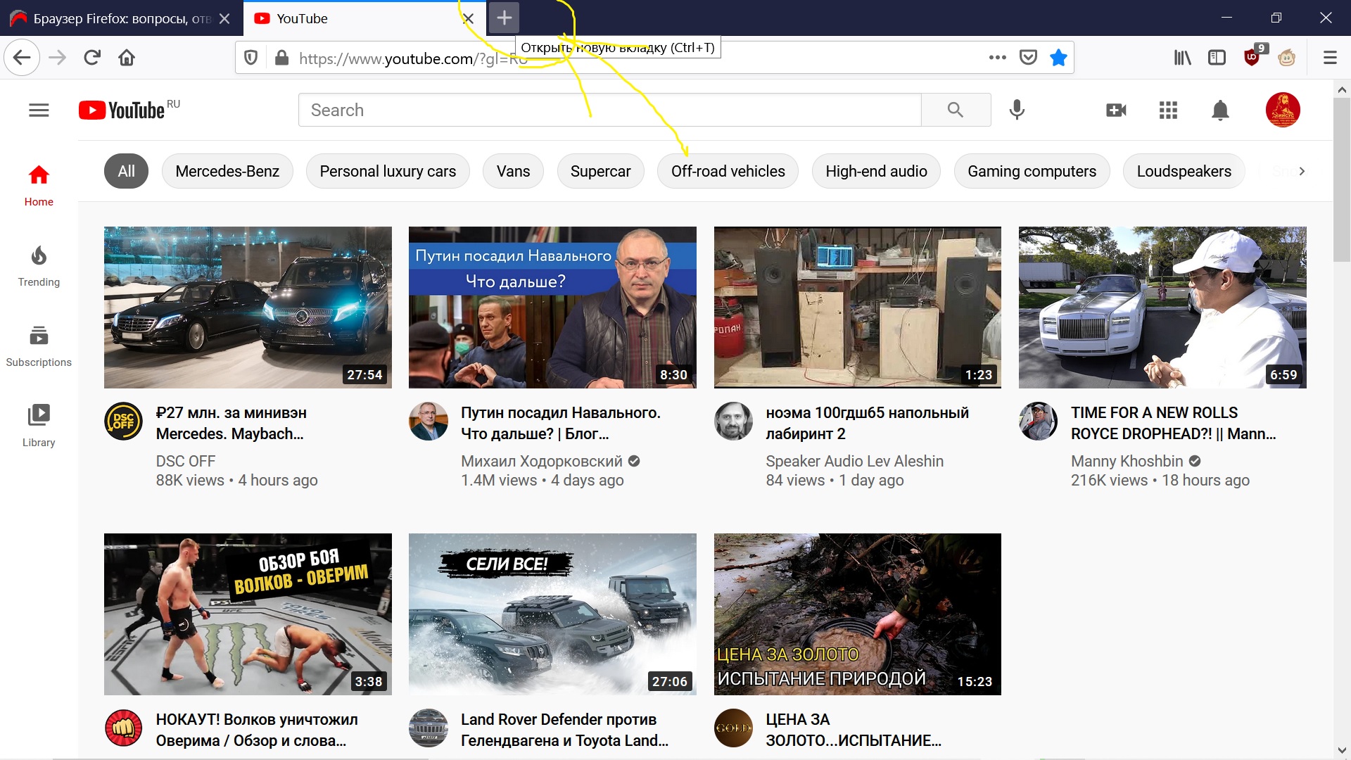 Артём если вводить из списка в адресной строке, то есть два решения. 1. нажать y (латинскую) в строке адреса 2. в настройках (about:preferences#privacy) отключить поиск в открытых вкладках