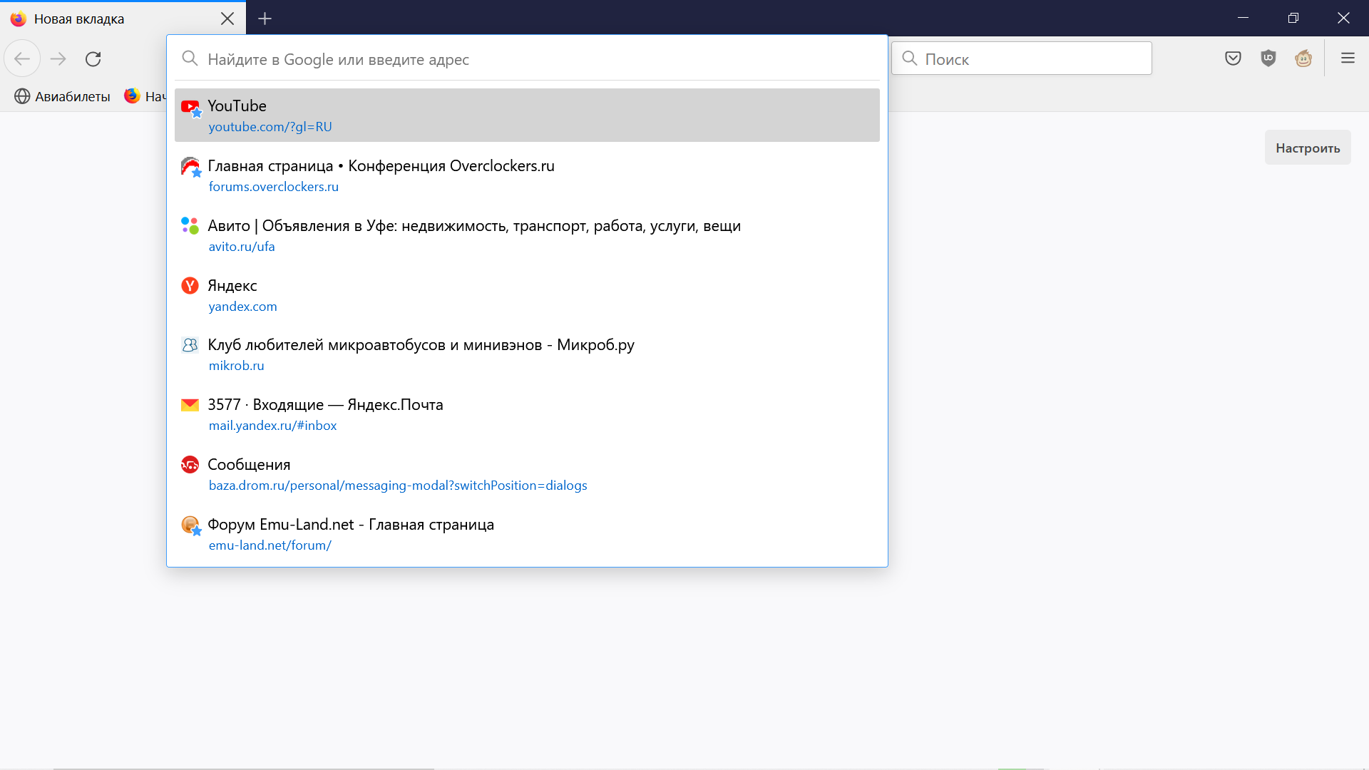 Други, помогите с направлением, куда копать. Т.к. некоторые сайты начали ругаться, что браузер старый и хрен тебе что покажу, решил обновиться до крайней версии, ну и там взять один из готовых userChrome.css, чтобы убрать дурацкое увеличение адресной строки (жаль, что стрелочку вниз для раскрытия списка адресов не вернуть). Но столкнулся с проблемой. На трех машинах три firefox, все крайней версии 89.0.2. Одинаковые стили, да и в принципе изначально одинаково настраивал. Но в двух все хорошо, а вот третий упорно отказывается раскрывать список сайтов как раньше, чтобы в нем было 16 адресов. Т.е. в двух браузерах все верно, и список сайтов из 16 позиций, и при начале ввода 16 вариантов подстановки. А в третьем список всего из 7 позиций, а при начале ввода как и должно быть, 16 вариантов. Измененные настройки about:config вроде как зеркально сравнил, исправил. Но толку нет.