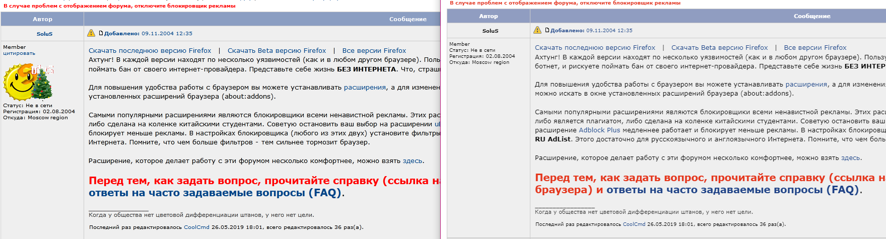 на левом скрине всё норм. у меня в лисе и хромом тоже самое, без всяких твиков. на правом скрине цвет заголовка (синий) неправильный и cleartype отключен, буквы "непропечатаны". откуда этот скрин?