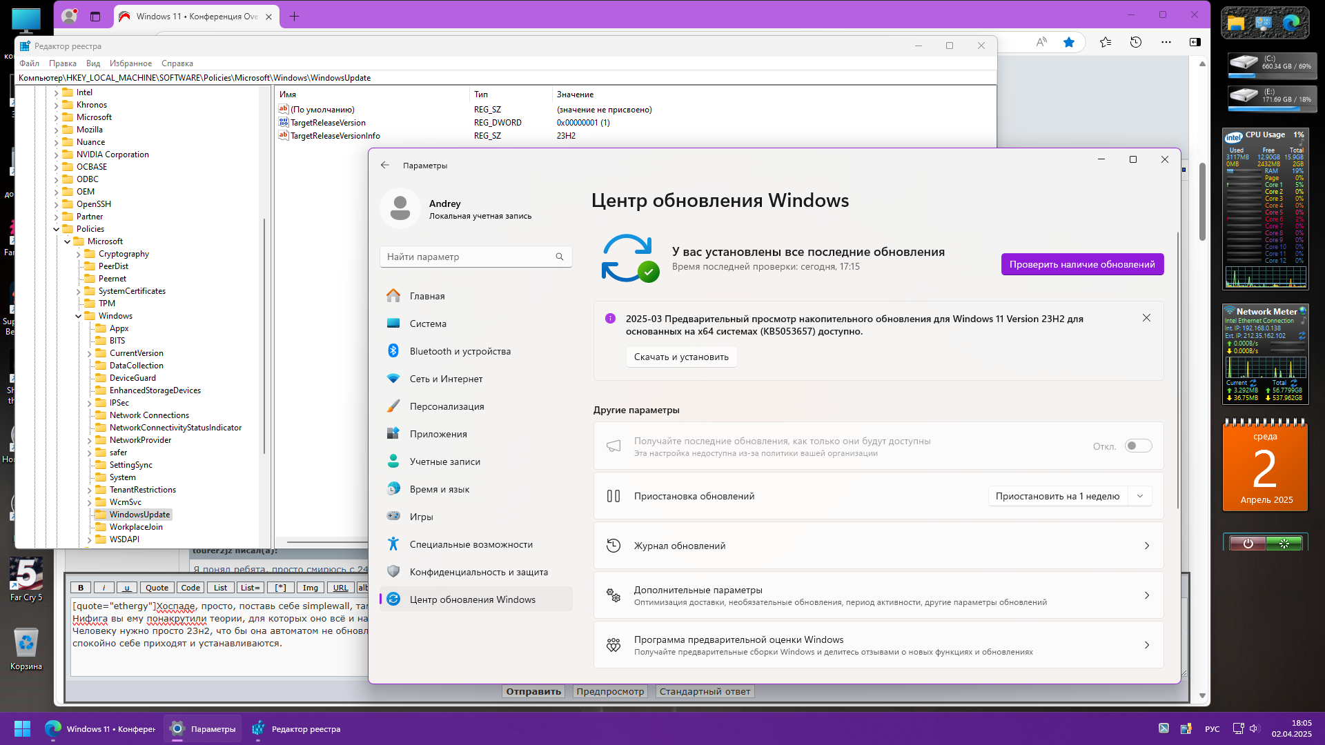 Нифига вы ему понакрутили теории, для которых оно всё и нахрен не нужно в обычной домашней винде. Для меня например слово фаервол, если правильно написал, что то типа китайской грамоты, и не нужна она её изучать. Человеку нужно просто 23н2, что бы она автоматом не обновлялась на 24н2, и делается это просто двумя лишними строками в реестре. Устанавливается винда без интернета, прописывается, и всё, 23н2 до окончания срока её поддержки, все остальные обновления на 23н2 спокойно себе приходят и устанавливаются.