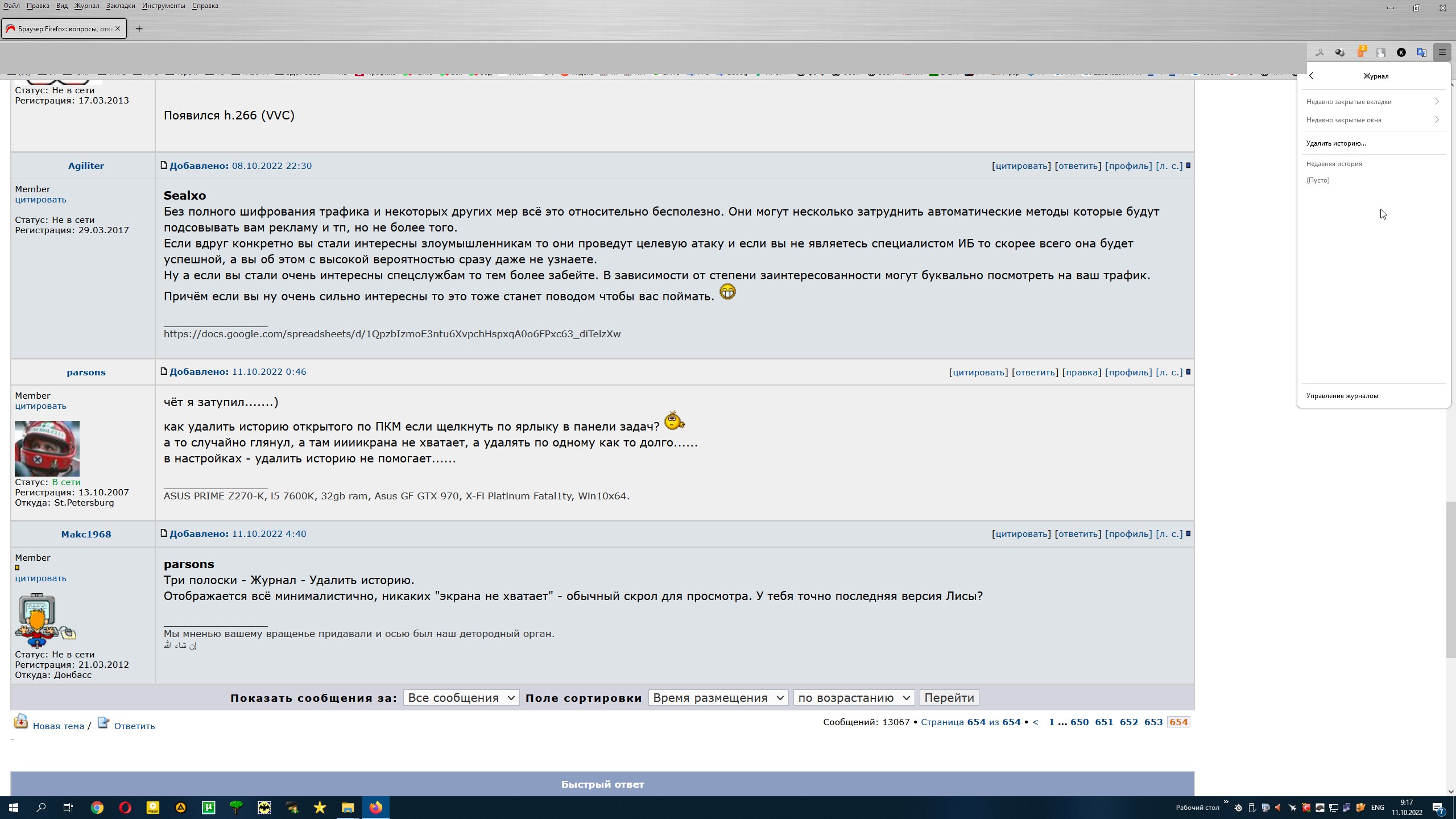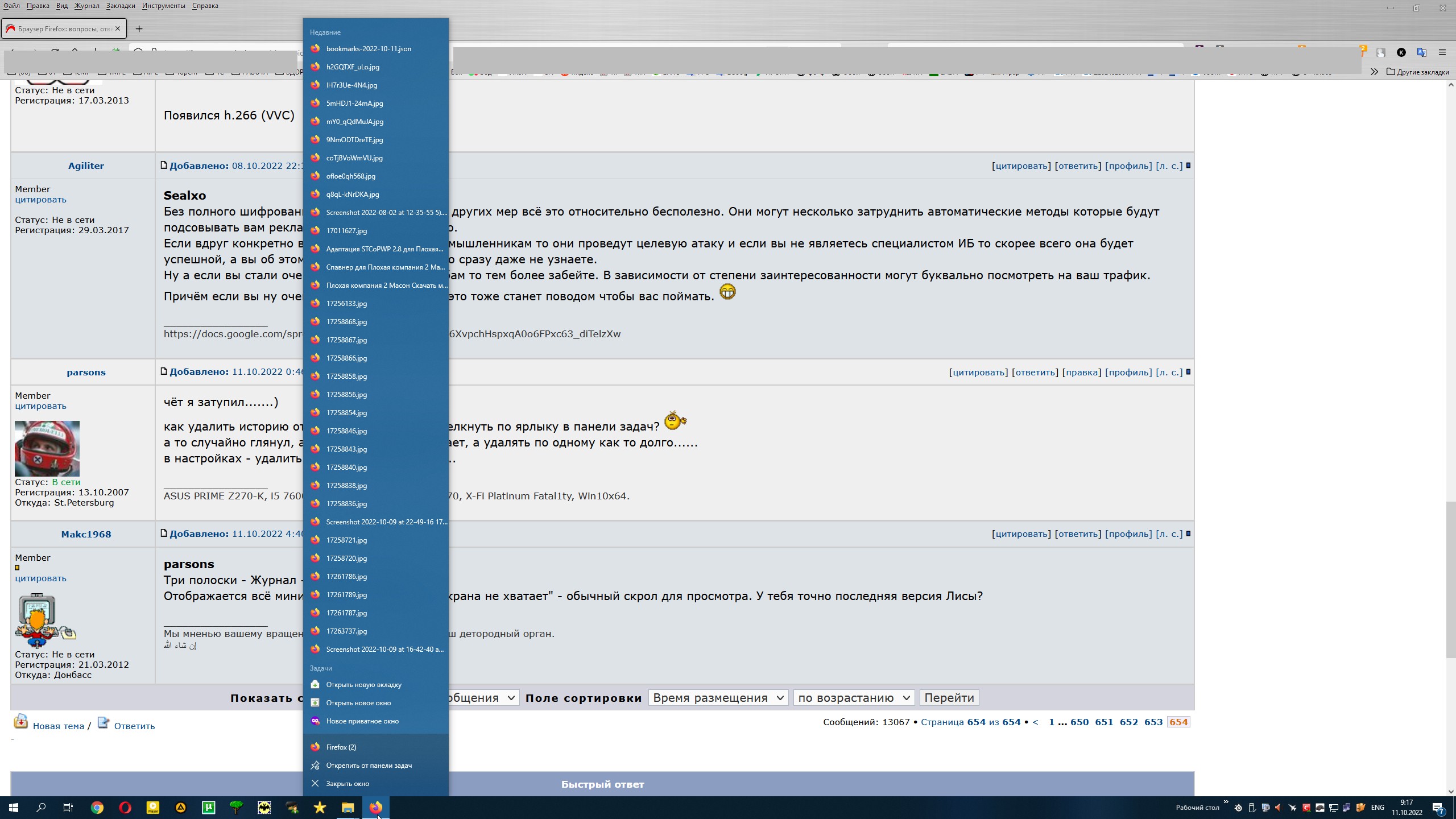 чёт я затупил.......) как удалить историю открытого по ПКМ если щелкнуть по ярлыку в панели задач? а то случайно глянул, а там иииикрана не хватает, а удалять по одному как то долго...... в настройках - удалить историю не помогает......