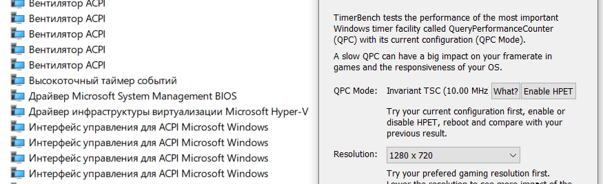 в дефолте у меня, а значит у всех пользователей моей сборки, по показаниям TimerBench работает TSC таймер, а не HPET, хотя само устройство включено.
