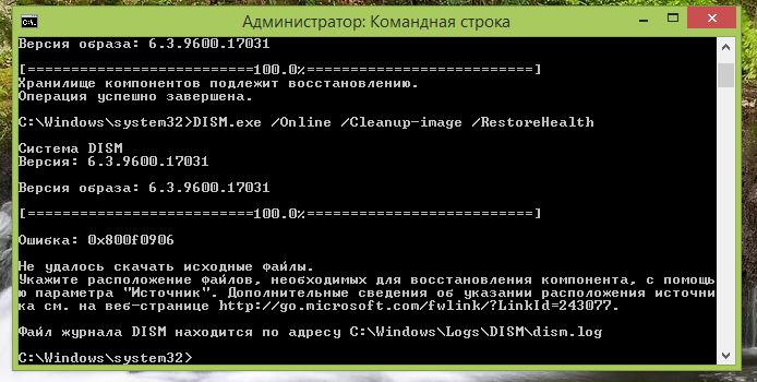 Avenger80 я вообще не знаю что это за муть такая, сам первый раз столкнулся. Я так думаю, за счёт этих команд идёт скачка из инета файлов, которые нужны для восстановления, или их замены. может скачать не может, а может и ещё чего. У меня вот как-то получилось, хоть и не с первого раза