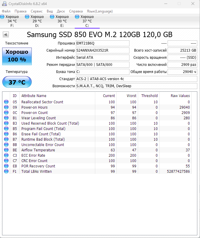 Шёл 25-й год, люди всё ещё занимаются всякой хернёй отключают файлы подкачки на ssd. Вот смотрите, диску 10 лет, никогда ничего не переносил и не отключал, всё работало штатно:
