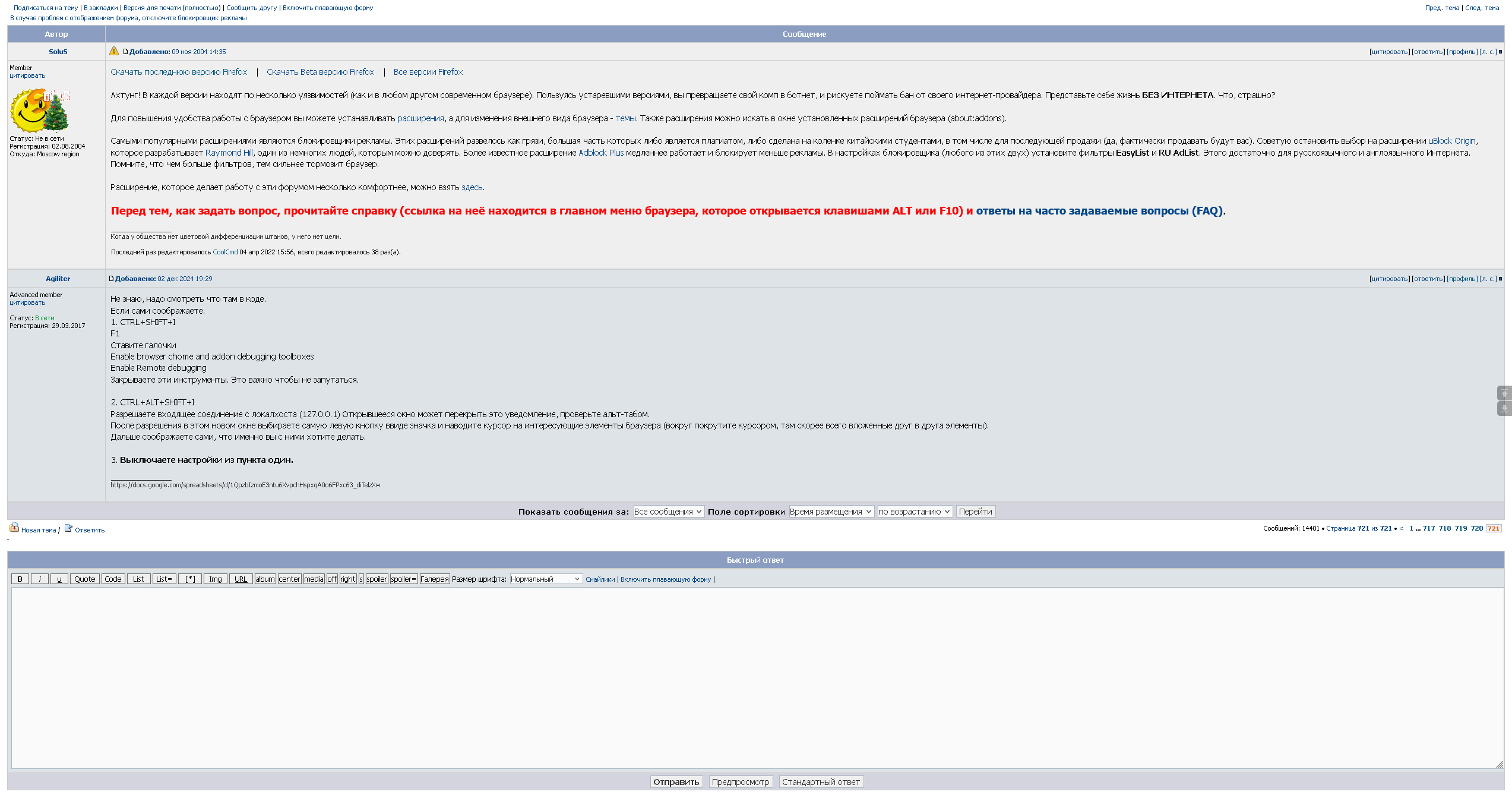 Перед тем, как задать вопрос, прочитайте справку (ссылка на неё находится в главном меню браузера, которое открывается клавишами ALT или F10) и ответы на часто задаваемые вопросы (FAQ).