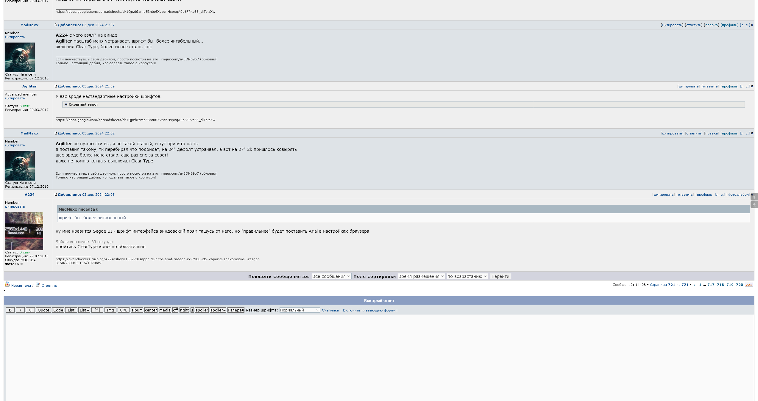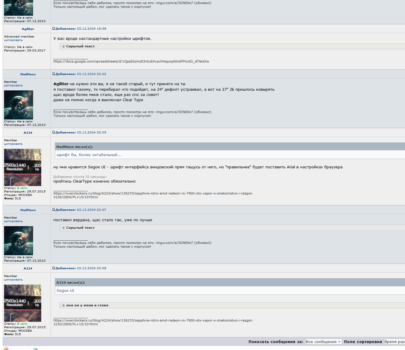 Agiliter не нужно эти вы, я не такой старый, и тут принято на ты я поставил тахому, тк перебирал что подойдет, на 24" дефолт устраивал, а вот на 27" 2k пришлось ковырять щас вроде более мене стало, еще раз спс за совет! даже не помню когда я выключал Clear Type