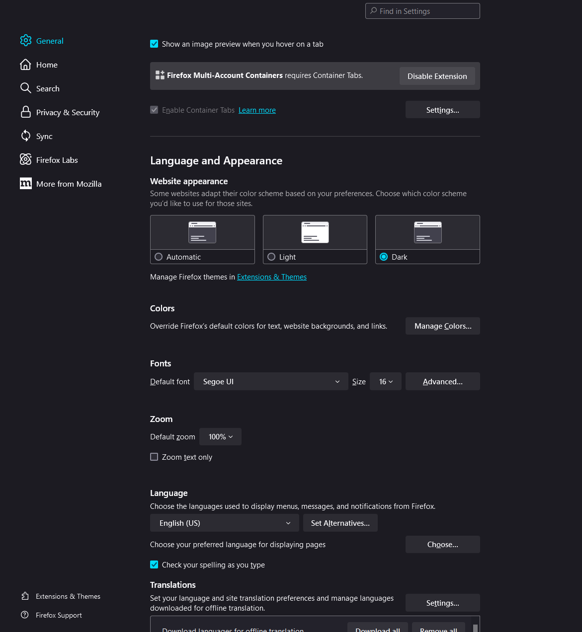 Для повышения удобства работы с браузером вы можете устанавливать расширения, а для изменения внешнего вида браузера - темы. Также расширения можно искать в окне установленных расширений браузера (about:addons).