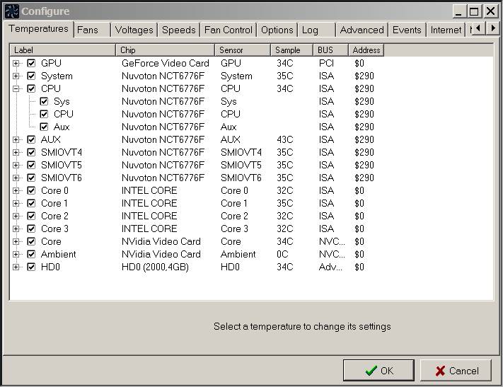 Q: Как узнать, чему соответствуют датчики температуры Temp1, Temp2? A: Запустите параллельно AIDA и найдите одинаковые показания. Переименуйте прежние названия в желаемые.