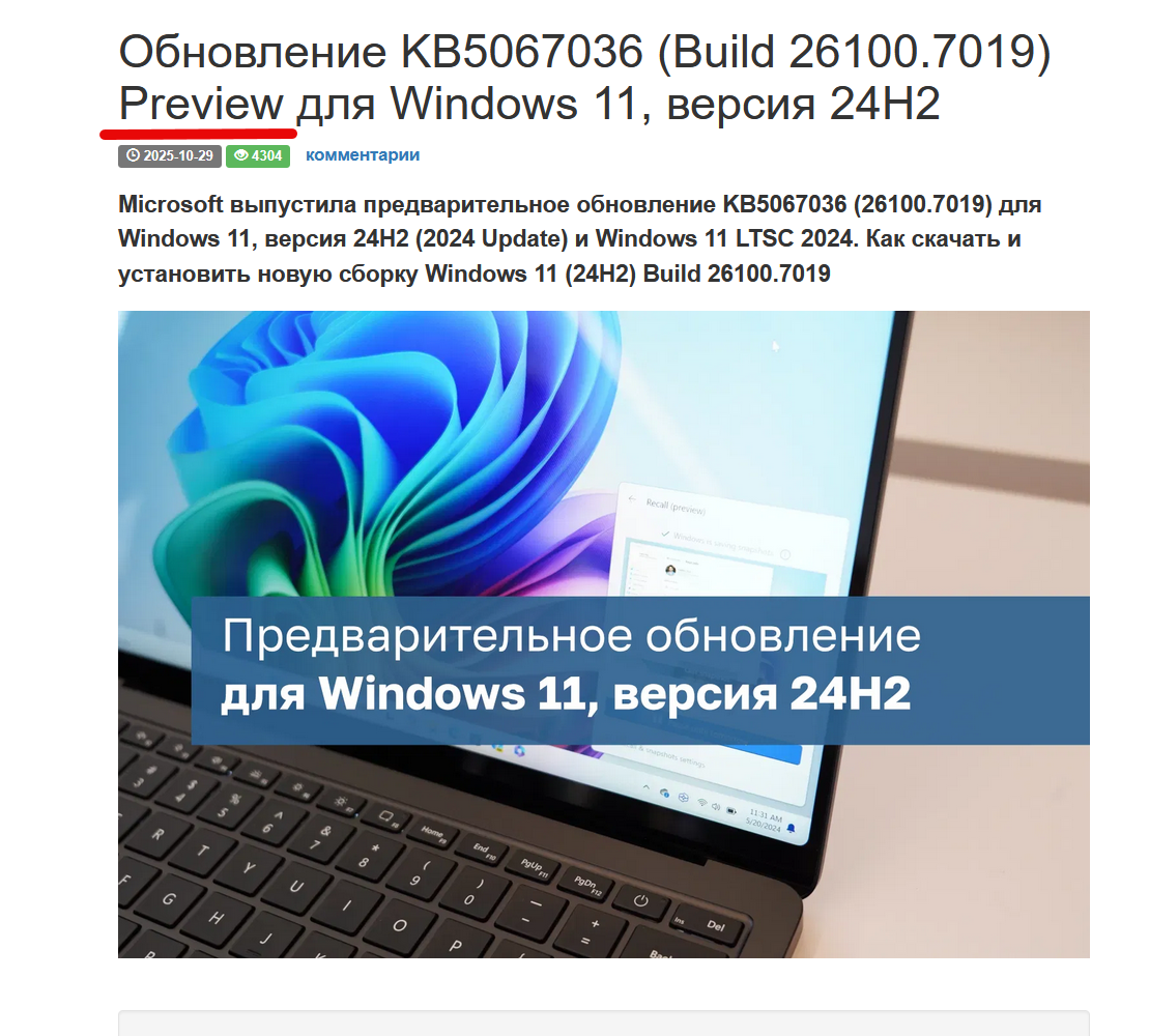 патч вышел для 26100/26200, причём тут инсайдерская сборка?, эти билды не инсайдерские.
