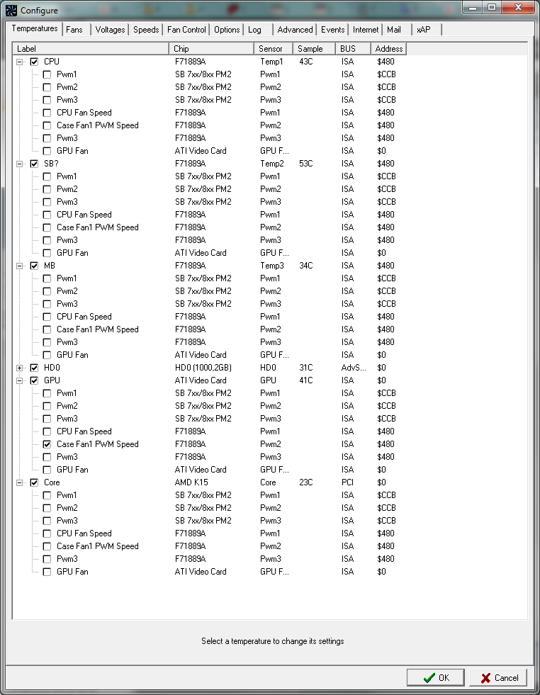 Q: Как узнать, чему соответствуют датчики температуры Temp1, Temp2? A: Запустите параллельно AIDA и найдите одинаковые показания. Переименуйте прежние названия в желаемые.