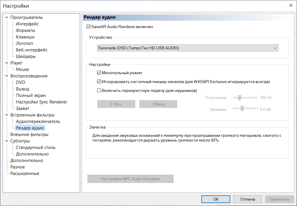 seebox пока не понял как лучше звучание, с MPC Audio Renderer в монопольном