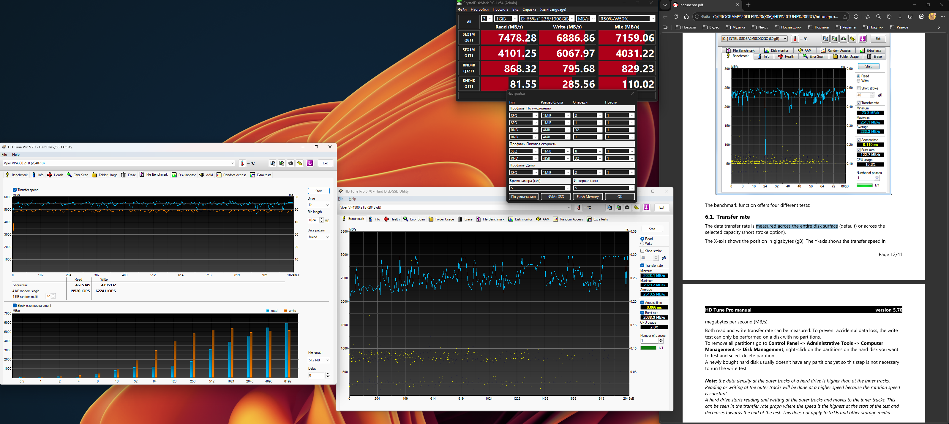 А да, и ещё. Тест Benchmark в HDTune очень старый, и ориентирован на HDD.