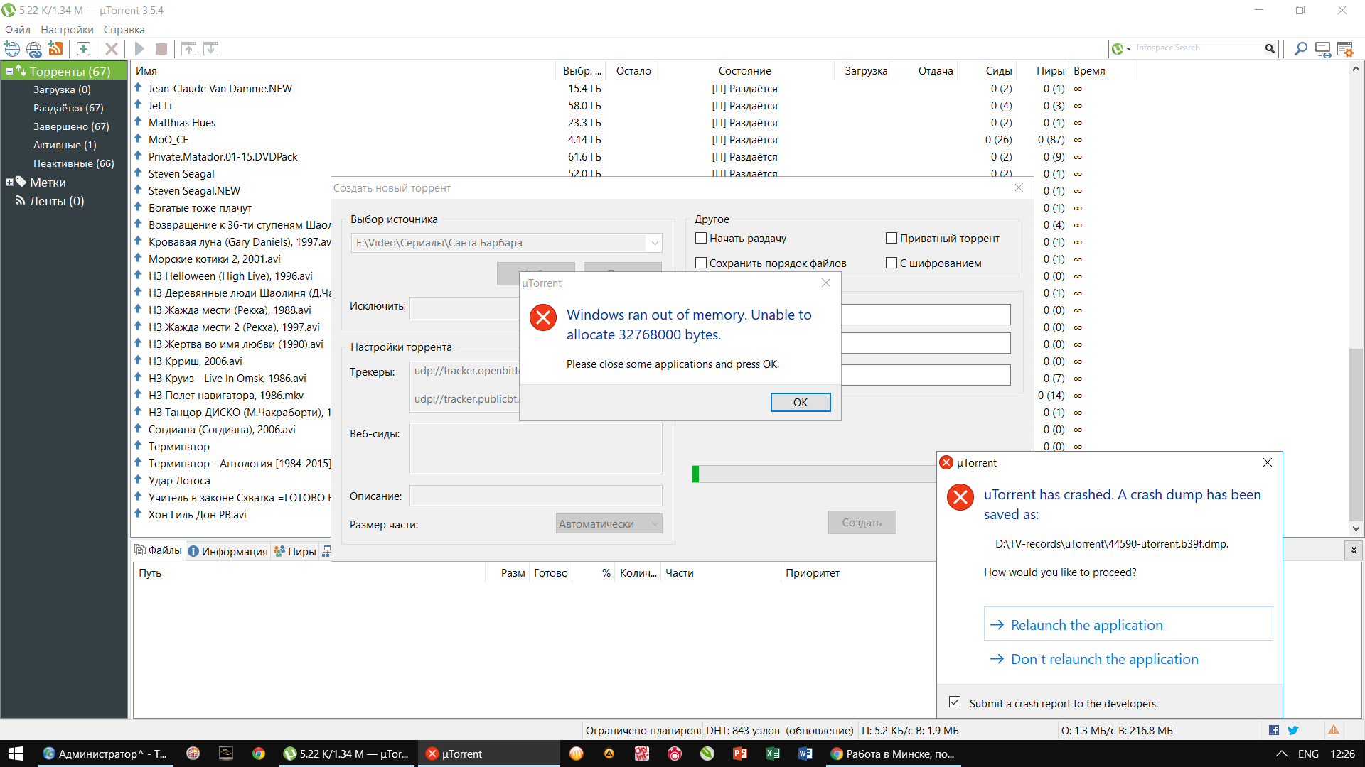 При создании раздач вес которой более 40Гб выдает с xxxx версии вот такую ошибку #77 Человек ставил у себя конкретную портабле версию и создавал раздачу в 70гб - у него всё отлично у меня - ошибка. Видимо где-то подправить реестр надо А вот где?