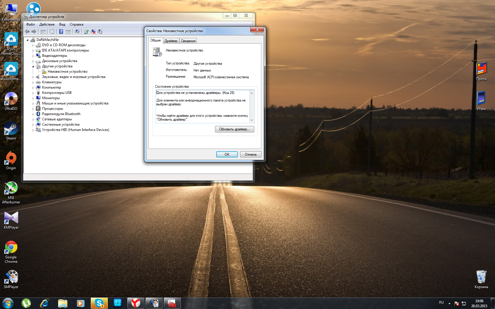 Скажите, что это может быть поставил все дрова У одного устройства восклицательный знак