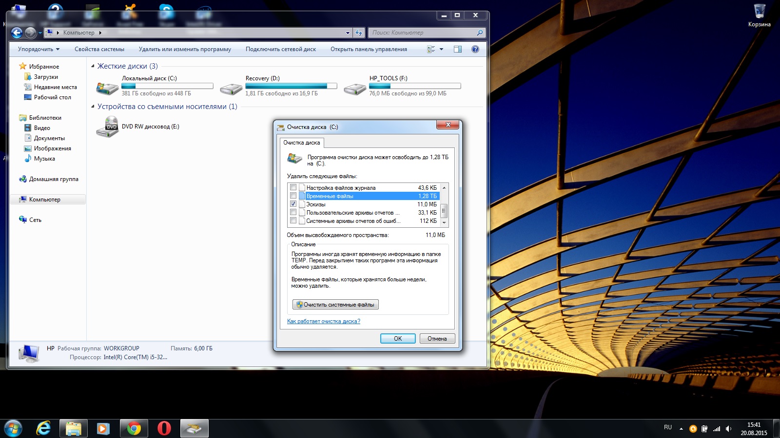 igorian11 подробнее - посмотрите содержимое и размер папок C:\Windows\Temp и C:\Users\Имя\AppData\Local\Temp (папка по умолчанию скрыта , "попасть" в нее - Панель управления\Все элементы панели управления - Параметры папок - Вид - Показывать скрытые файлы , папки и диски. > Применить , папка AppData появиться в "Персональной папке" в меню "Пуск" ) P.S вообще у вас какое-то недоразумение с определением размера временных файлов... ну не могут какие либо файлы на диске весить в 2.5 раза больше чем объем самого диска ! это просто какой-то глюк очистки системы (ИМХО)