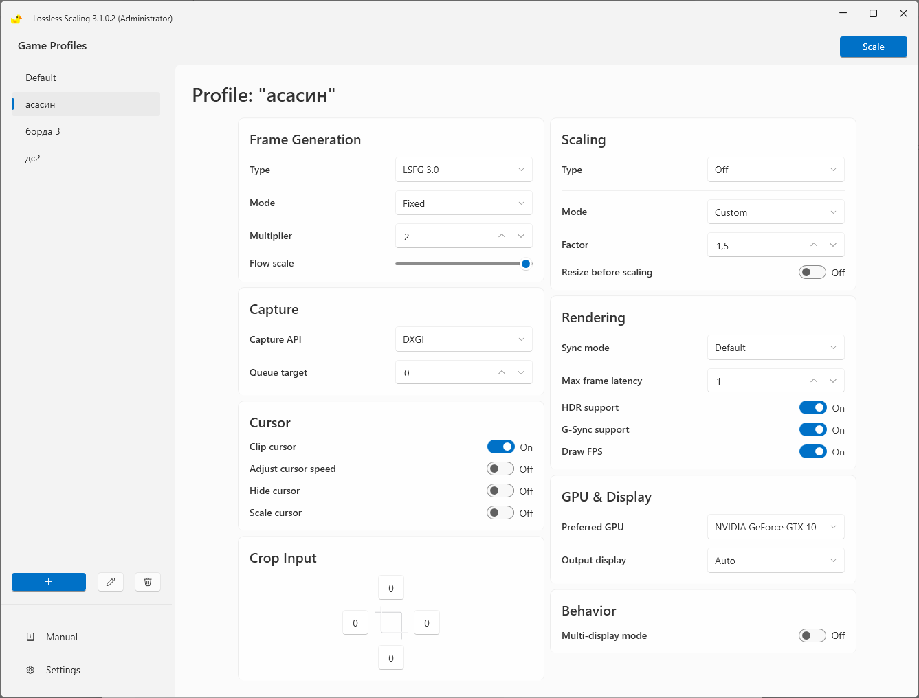 затестил 3070 +1080ti на подхвате, работает отлично, артефактов чуть больше чем с dss fg, задержки особо и нет. hdr работает, g sync работает.