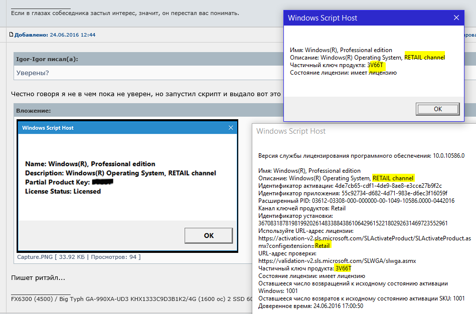 Ссылки на образы или места, где их можно достать, считаются нарушением п. 3.17 правил конференции, если только идентичный образ не был выложен официально Microsoft в открытый (не требующий регистрации, ключей или подписок) доступ. То же самое касается и ключей. Советы/рекомендации по установке редакций, доступных только в рамках корпоративного лицензирования, рассматриваются отдельно и могут быть классифицированы как нарушение 3.17. Активация сама по себе не легализует (не превращает в лицензионную) установленную копию Windows. Обсуждение (а тем более поддержка/пропаганда) методов получения активированной копии без ее приобретения (за исключением действующих программ обновления с легально приобретенных копий предыдущих версий лицами, подпадающими под действие этих программ) не приветствуется.