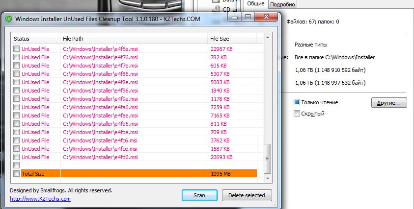 ну 3Гб уже что-то, у меня Windows Installer UnUsed в первый раз всего 105-106Мб нашел, потом вообще по 1-2Мб, я им больше и не пользуюсь, потому что "минус 100Мб" это вообще ниочем...