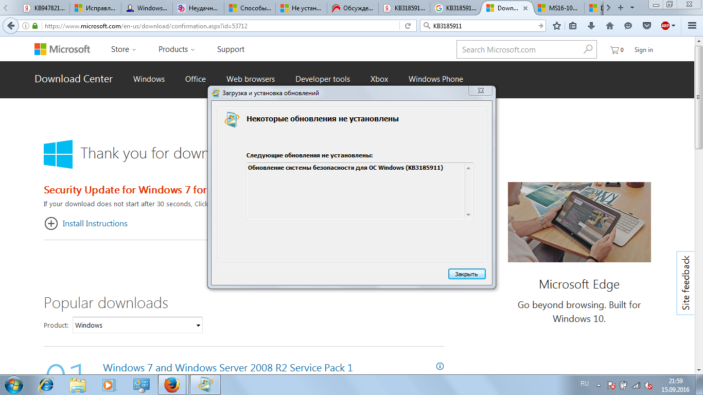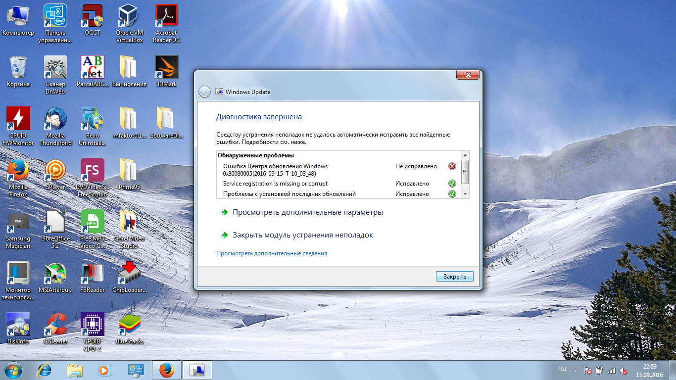 Сегодня вновь нарвался на проблемы на свою голову. Решил обновить дрова на видюху, винда потребовала установить какое-то обновление. Я установил, но установка самих дров прошла неудачно - Радеон превратился в "стандартный графический адаптер VGA". Я откатил систему с помощью точки восстановления, но в конце восстановления ноут мне выдал: "восстановление неудачное. Не все файлы восстановлены". Теперь установить любое обновление невозможно - установщик бесконечно долго ищет (хотя патч KB3102810 установлен). KB3135445 не устанавливается, да и любое другое обновление заканчивается неудачей. Все способы из Интернета пробовал. Что делать?