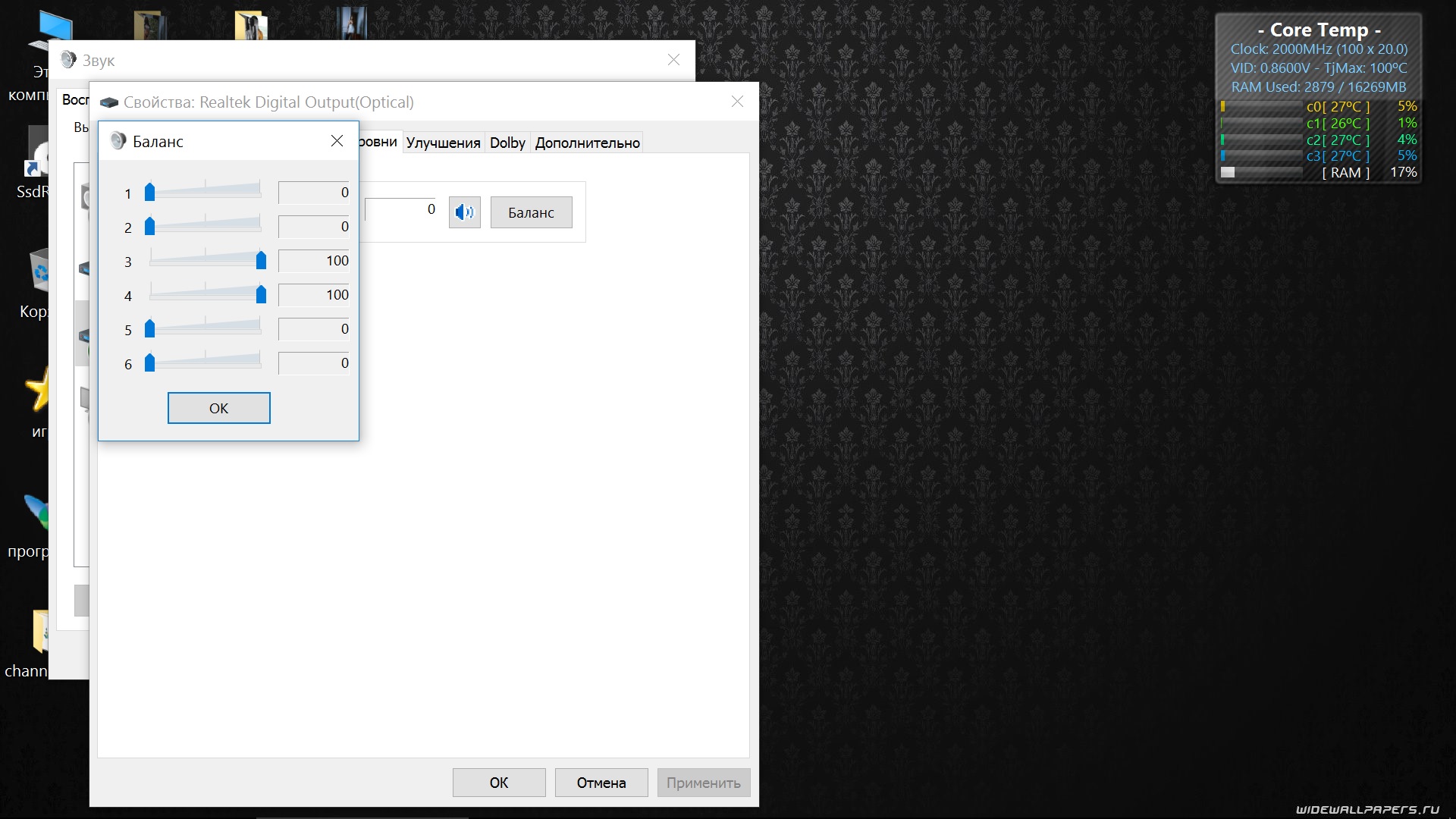 а у меня вот проблема со звуком 5.1 через оптику( включаю комп и какую нибудь мелодию или игру и вижу что балансы на калонках по разному разбросаны и регулируются не все вместе а хаотично кто куда. в итоге звук из разных колонок идет с разной громкостью. как это исправить то?