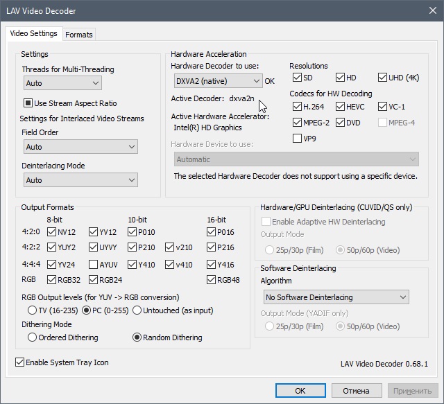 Там или LAV врёт, или ProgDVB задействует что-то другое. Ни разу не видел, чтобы LAV показывал "active"