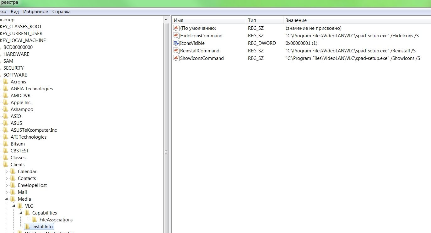 да я когда это увидел,точнее морду его не увидел первый раз,) лазил в реестр -искал,не помню нашлосb или нет,помоему нифига,но ниче не дало это. ну и если даже как-то этот vlc умудрился уползти за окно,я в панеле задач жму по его ярлыку пкм и выбираю там плейлист,то ест звук-то должен бытb. ведb после его переустановки там звук вроде далеко не на нуле стоит по умолчанию. но не то что звука нет,его и в том-же например виндовом микшере громкости нет. не помню,щас поискал в реестре,