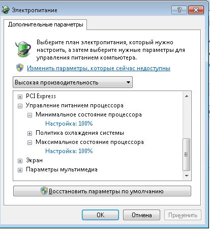 kondor06 вопрос не в том кого устраивает, а кого нет, а в необходимости в режиме *Высокая производительность*, возможно питание процессора при *Минимальное состояние* - 5% не отличается от от режима *Сбалансированный*, я не сравнивал, просто при разгоне процессора почему то везде рекомендуют включить *Высокая производительность*.