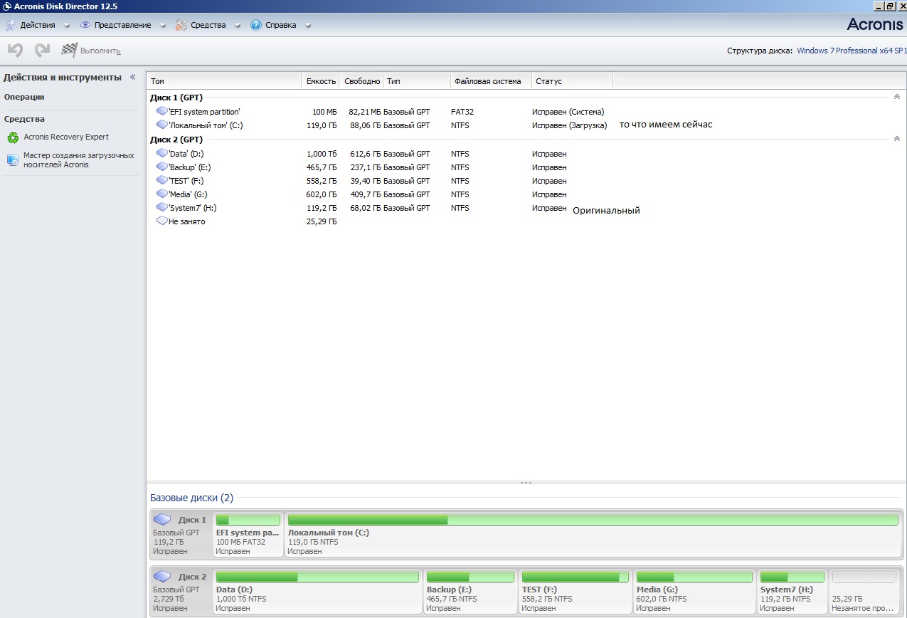 была 7х64 сборка 7600, со временем загадилась и начала тупить. сделал копию раздела акронисом диск директор 12.5, поставил сборку 7601 и началооооос.... то dll не видит, то с правами муть какая-то хоть админом хоть кем. при попытке вертать обратно - акронис создает задачу но выполнить не может. из-под загрузочного чот очкую что свалитса 7601 а загрузочной 7600 обратно не станет. каг быть ? и кстати, скрытый том на 100мб вероятно тоже как-то изменился при переустановке ? установочный диск 7600 утерян, догадываюсь что даже если скачть и записать образ то не срастетса даже на "восстановление системы". каг быть чтоб наверняка ? из-под загрузочной акрониса шлепнуть обратно ?
