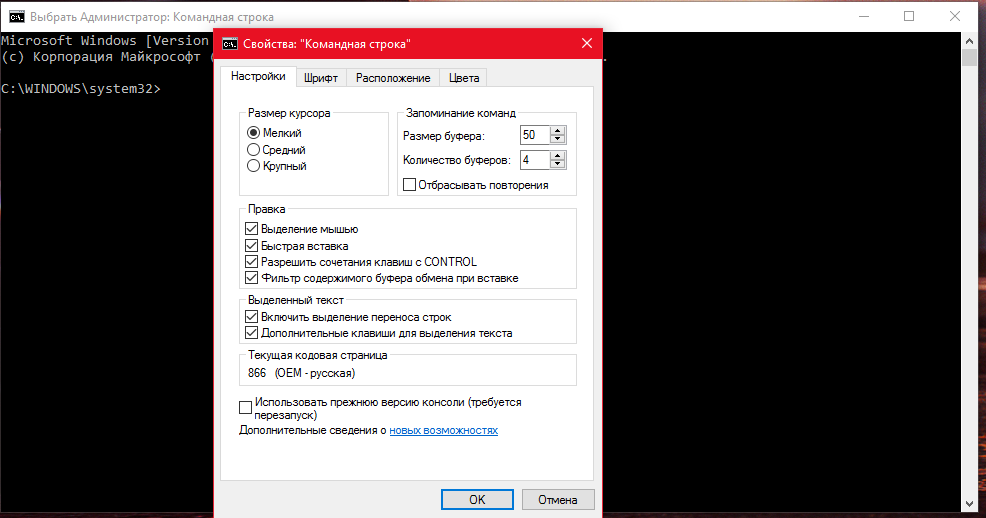 Не знаю, что ты там намунил, зайди в свойства консольки, ПКМ по заголовку окна и смотри что там у тебя с галочками не так.