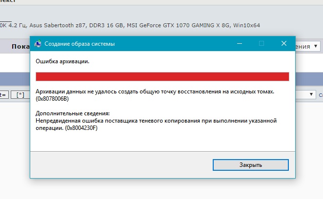 Попробовал на ноуте сделать архивацию - та же самая ошибка вылазит. Проверьте кто-нибудь вкладку защита системы.(мой компьютер правой кнопкой - свойства - защита системы) У меня на ней вылазит тоже ошибка.