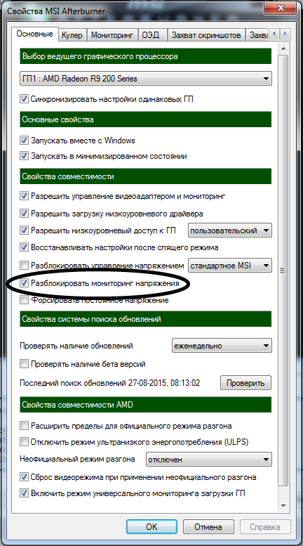 1. Для разблокировки разгона в файлеMSIAfterburner.cfg (Находится в папке, где установлена программа) необходимо прописать следующие значения: UnofficialOverclockingEULA = I confirm that I am aware of unofficial overclocking limitations and fully understand that MSI will not provide me any support on it UnofficialOverclockingMode = 1 2. Для разблокировки напряжения и его мониторинга в том же файле прописываем следующие значения: UnlockVoltageControl = 1 UnlockVoltageMonitoring = 1 (!)В драйвере Catalyst 12.2+ не хватает пары файлов, скачиваем здесь 3. Программа так же "умеет" отображать энергопотребление CPU и GPU в играх. ~ Для этого в Настройках (Настройки > Мониторинг) нужно активировать пункты "Энергопотребление" и "Энергопотребление ЦП". 4. После перезагрузки или включения компьютера слетает профиль разгона. Как сделать, чтобы он грузился вместе с Windows? ~ Одно из решений тут - настройка автозапуска ~ Или штатный метод попробовать, описанный здесь 5. Выскакивает ошибка "В данный момент невозможно произвести внедрение в Diretc3D12 компоненты. Строго рекомендуется перезапустить приложение" Решение описано в этом посте 6. Шпаргалка по оформлению оверлейного дисплея от камрада y0121ck - ОСНОВЫ и ДОПОЛНЕНИЕ