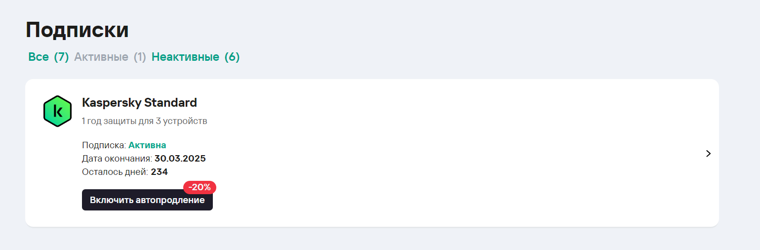 Кто-то писал, что есть промокоды на продление (Данное предложение действительно для продления приобретенных ранее лицензий Kaspersky Antivirus, Kaspersky Internet Security, Kaspersky Total Security, Kaspersky Internet Security for Android, Kaspersky Internet Security for Mac, Kaspersky Security Cloud Personal, Kaspersky Security Cloud Family, Kaspersky Safe Kids, Kaspersky Password Manager, Kaspersky Who Calls. ) , можете попробовать: 1. Bonus20 2. Bonus30 или 30Bonus 3. HABR Работают ли они сейчас или нет не знаю, надо проверять.