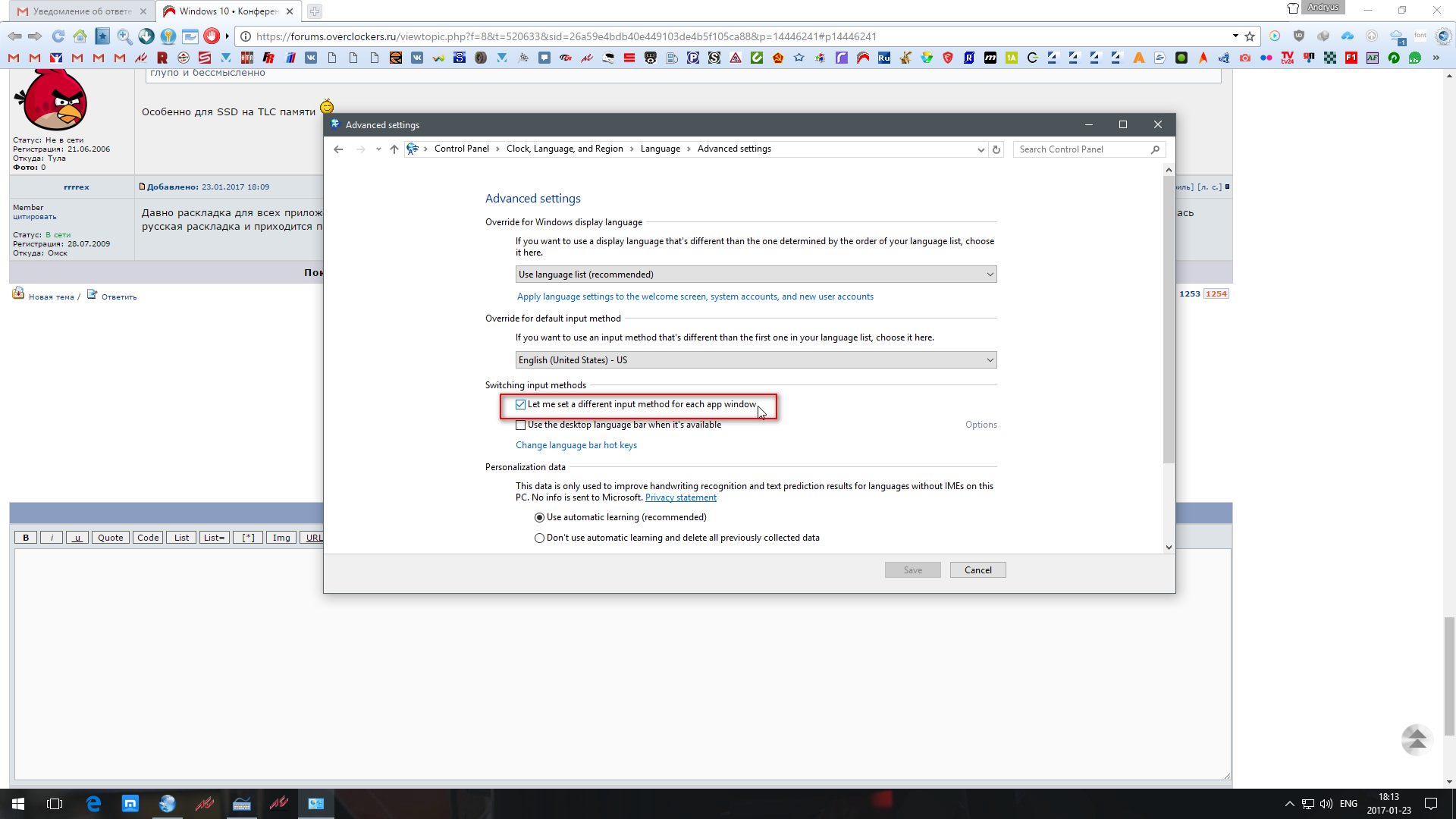 Давно раскладка для всех приложений общая? Раньше у каждого своя сохранялась. Можно ли как-то это вернуть. Неудобно в одном приложении требуется английский язык, а после другого осталась русская раскладка и приходится переключать.