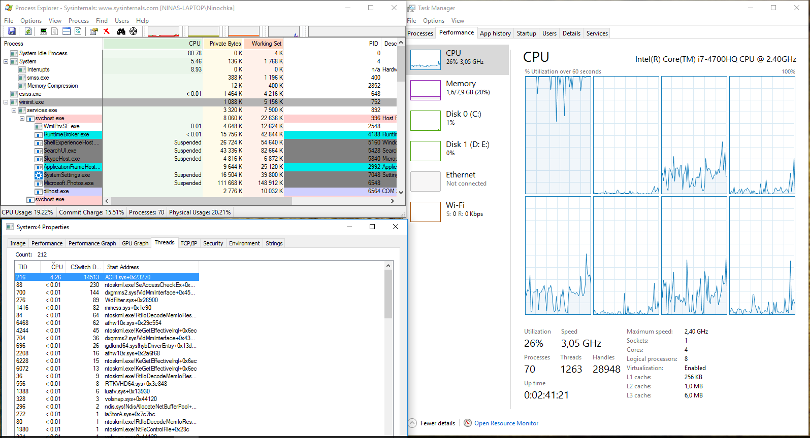 elek давайте так посмотрим-диспетчер задач,производительность,открыть монитор ресурсов,цп,а там отсортируйте по загрузке цп например я запустил аиду стресс тест и вот вижу что грузит