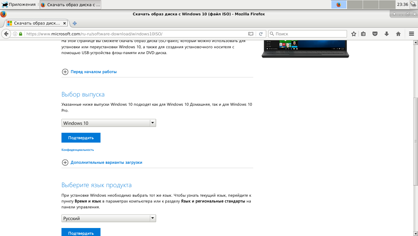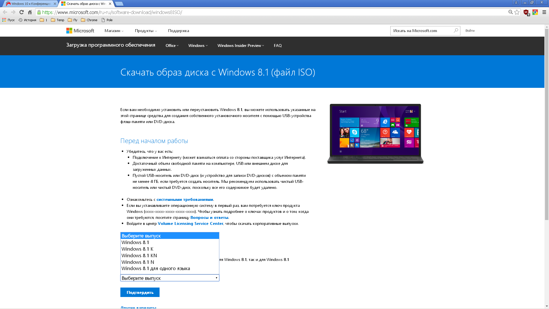 кстати - запустил из под 10 - и да в начале станицы написано "мы заметили что вы сидите на 10" и не дает качать образы, а только обновляться... надо маскировать браузер под предыдущие ОС...