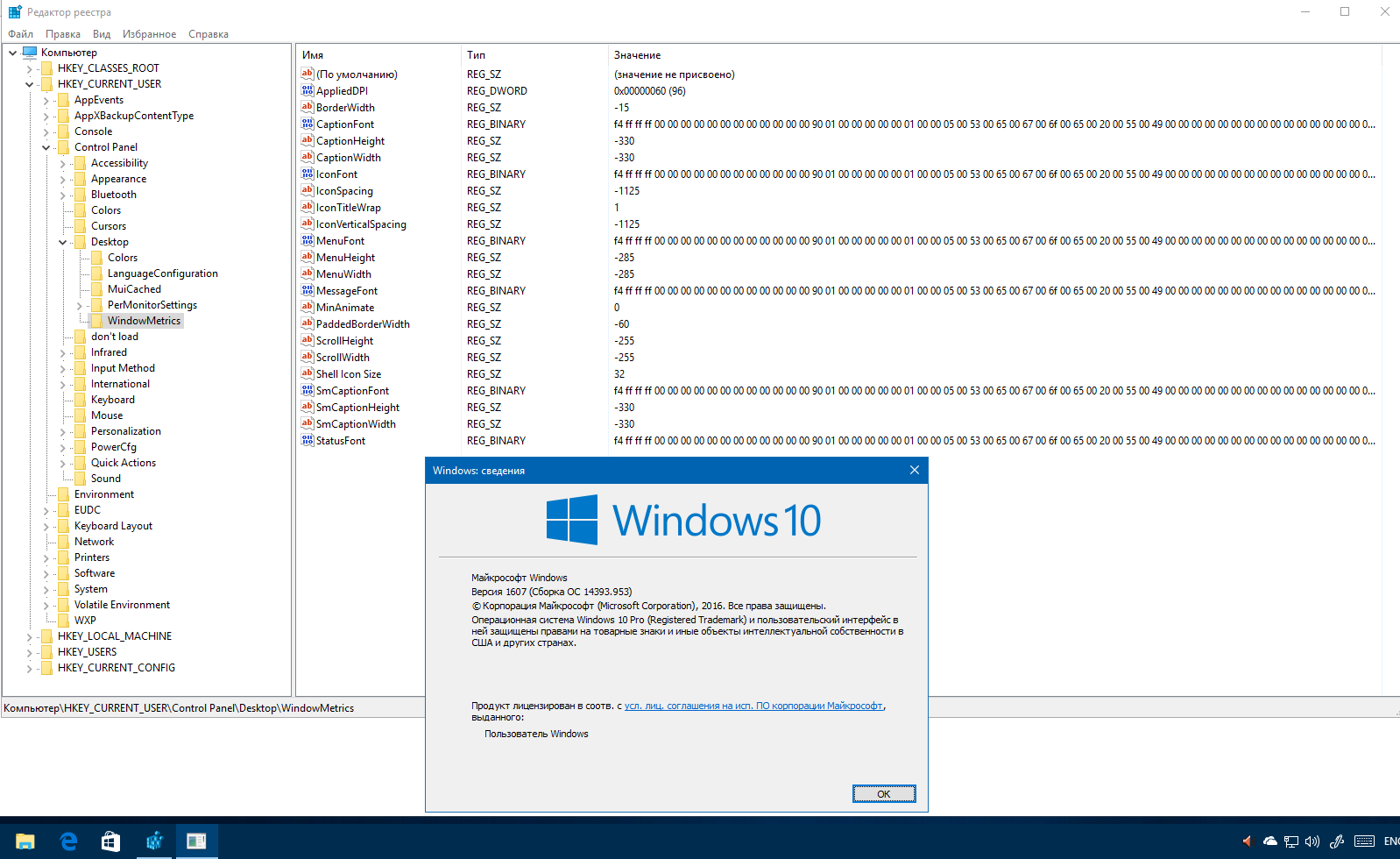 вот со второго компа, там старая сборка стоит еще, с ярлыками всё норм. главное, какой смысл? это не в WindowMetrics дело. Но им можно исправить ситуацию как костылём - Windows 10 #14686738