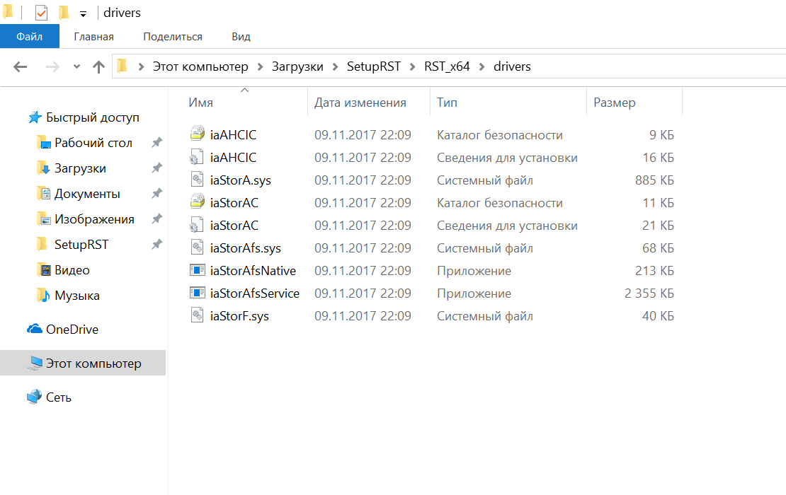 Скачал драйвер Intel Rapid Storage Technology ... Распаковал с помощью Universal Extractor сначала exe-шник, затем msi-установщик ... WinRARом в .msi.