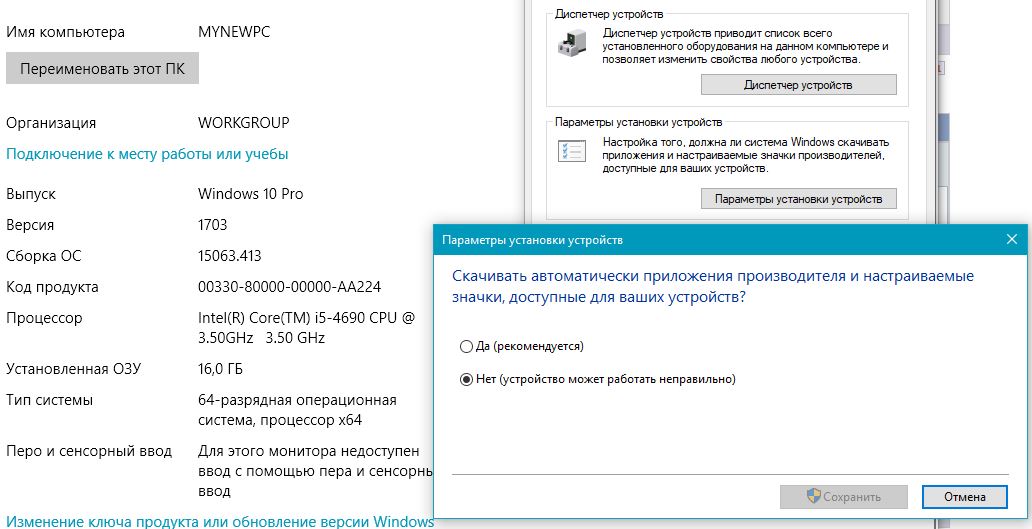 Так может это и имеется в виду. К сожалению не знаком с рус. версией Win10. Но это легко выполнить глянув на подсказки на англ. яз., и обновление драйверов можно запретить следующим путём: