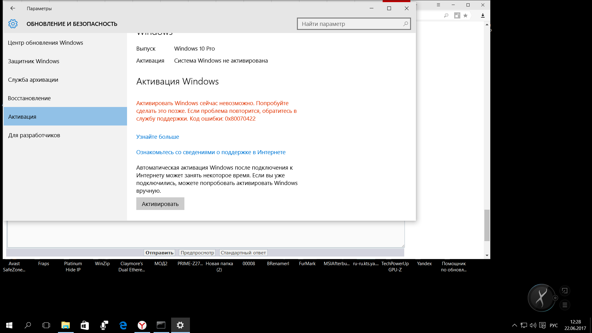Посоветуйте как активировать винду -поменял мамку и проц и вылезла трабла активации ,обновы сбоят ,откатился назад трабла осталась ,пробовал через аиду 64 код активировать - не пропускает ...?