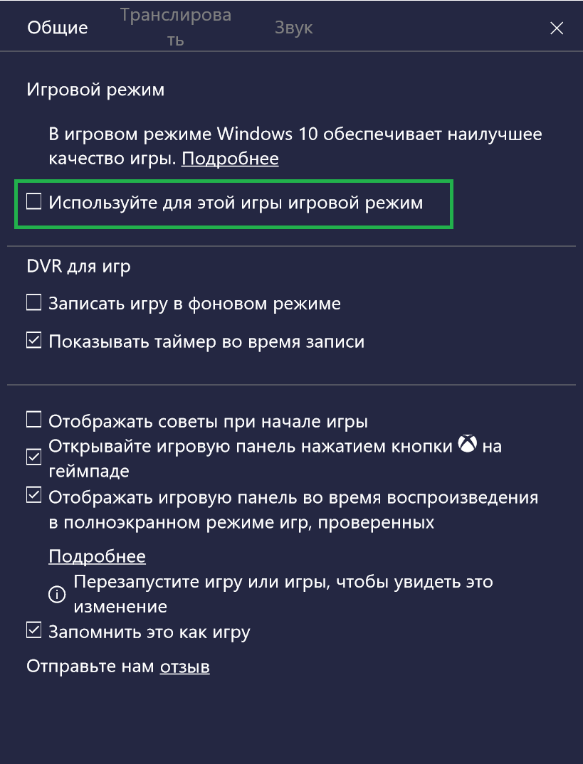 Игровой режим - это не про прирост попугаев. Активация игрового режима для конкретной игры (включается из всплывающего гэйм бара по WIN+G или кнопке Guide на геймпаде)