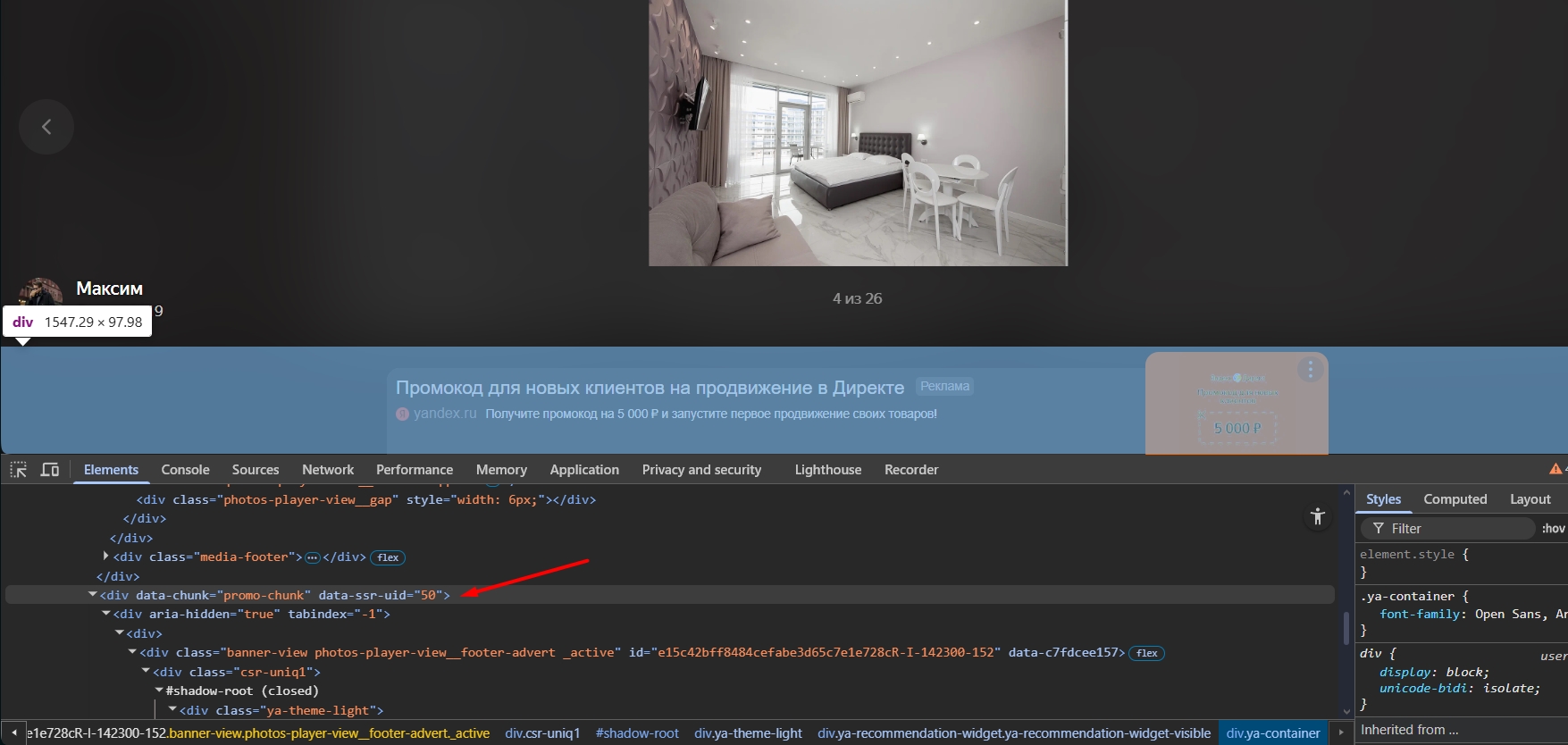 uBlock + Opera. Пытаюсь в Яндексе заблочить баннер под фотками на их maps. Правая кнопка мыши - Блокировать элемент — отказывается открывать инструмент uBlock. Хотя на других страницах и даже на стартовой yandex.ru работает. У них какой-то сговор с Яндексом? Как прописать правило блока этого элемента вручную в "Мои фильтры" для uBlock?