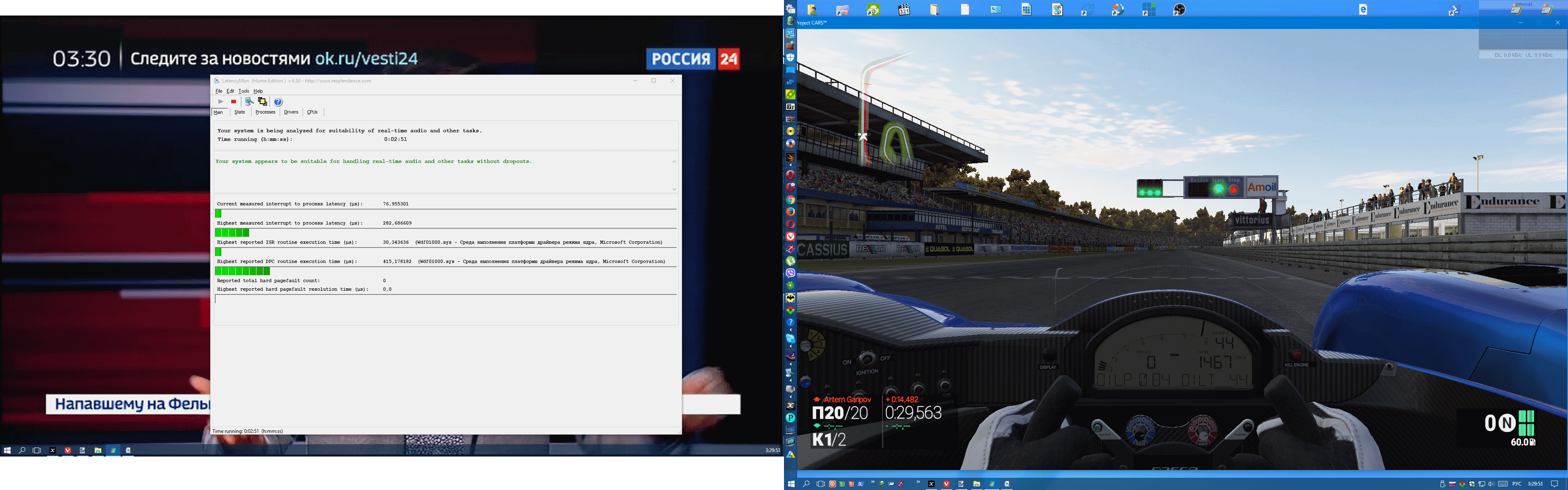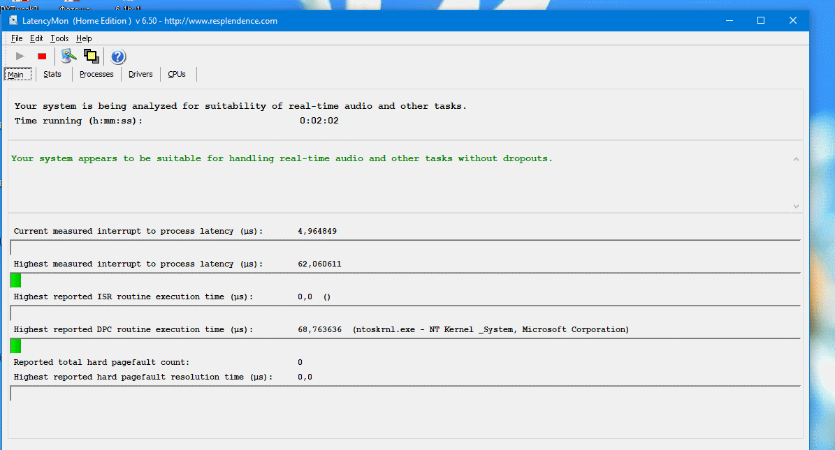 ты попробуй запустить латенсимон при игре например, или серфинге (игру ес-но в оконном режиме, latencymon поверх всех окон). увидишь как минимум желтое.