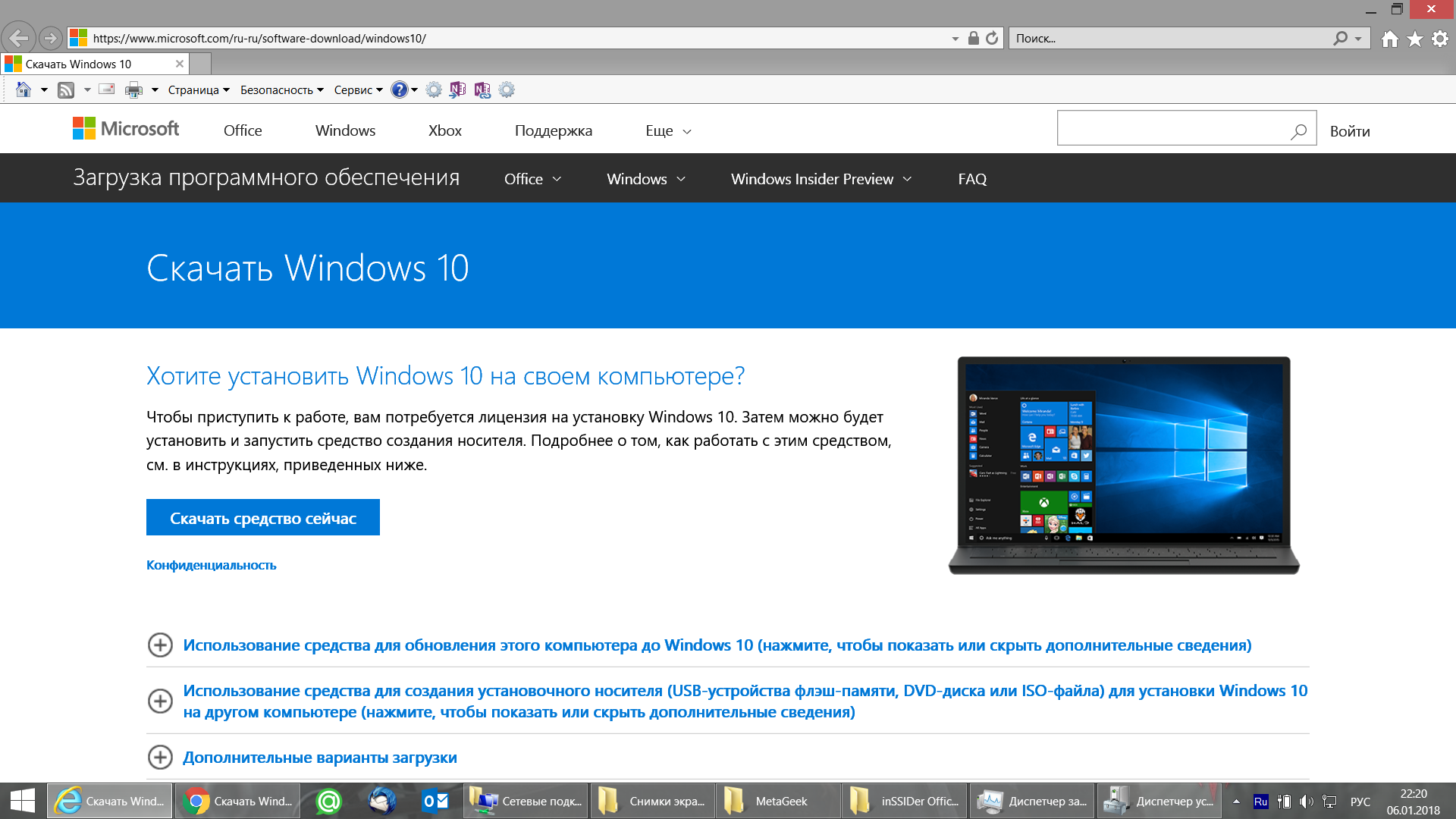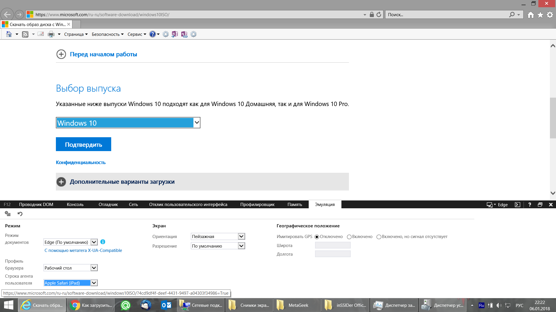 Ссылка на ISO образы Windows 10 c сайта Microsoft (Выбираете просто Windows 10 - это самая стандартная версия, включает Pro и Home x32&x64, остальные урезанные...)
