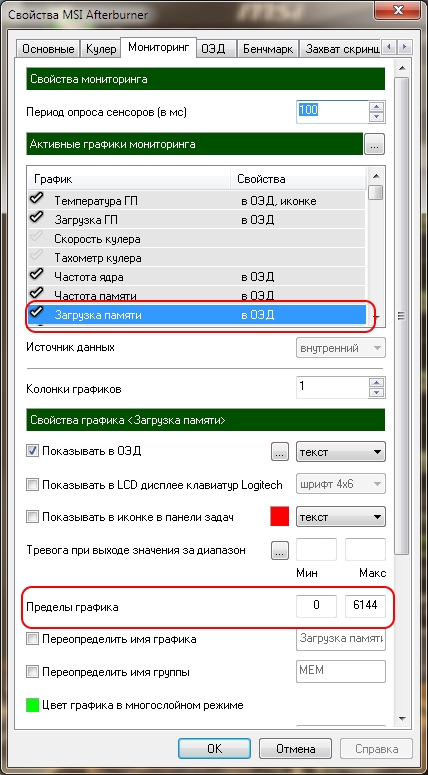 Настройки, мониторинг, пределы графика указать(себе на на 6 Гигах ставил):