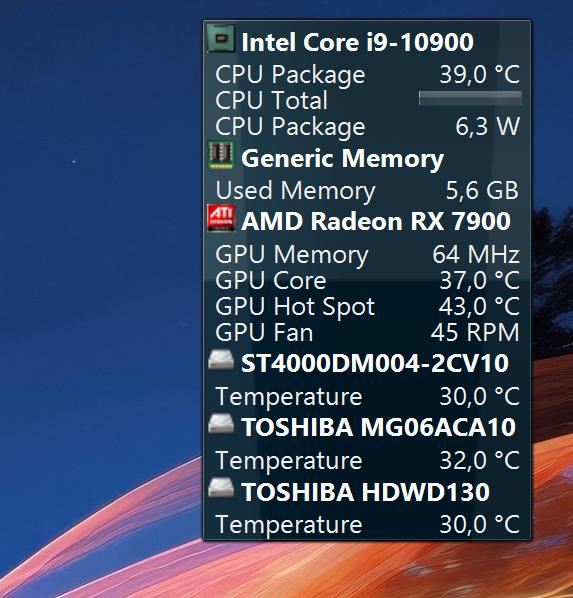 экран на котором отображается загрузка CPU, температура CPU, загрузка GPU, температура GPU. Хочу точно такой же видеть на рабочем столе, кто-то знает как называется эта программа?