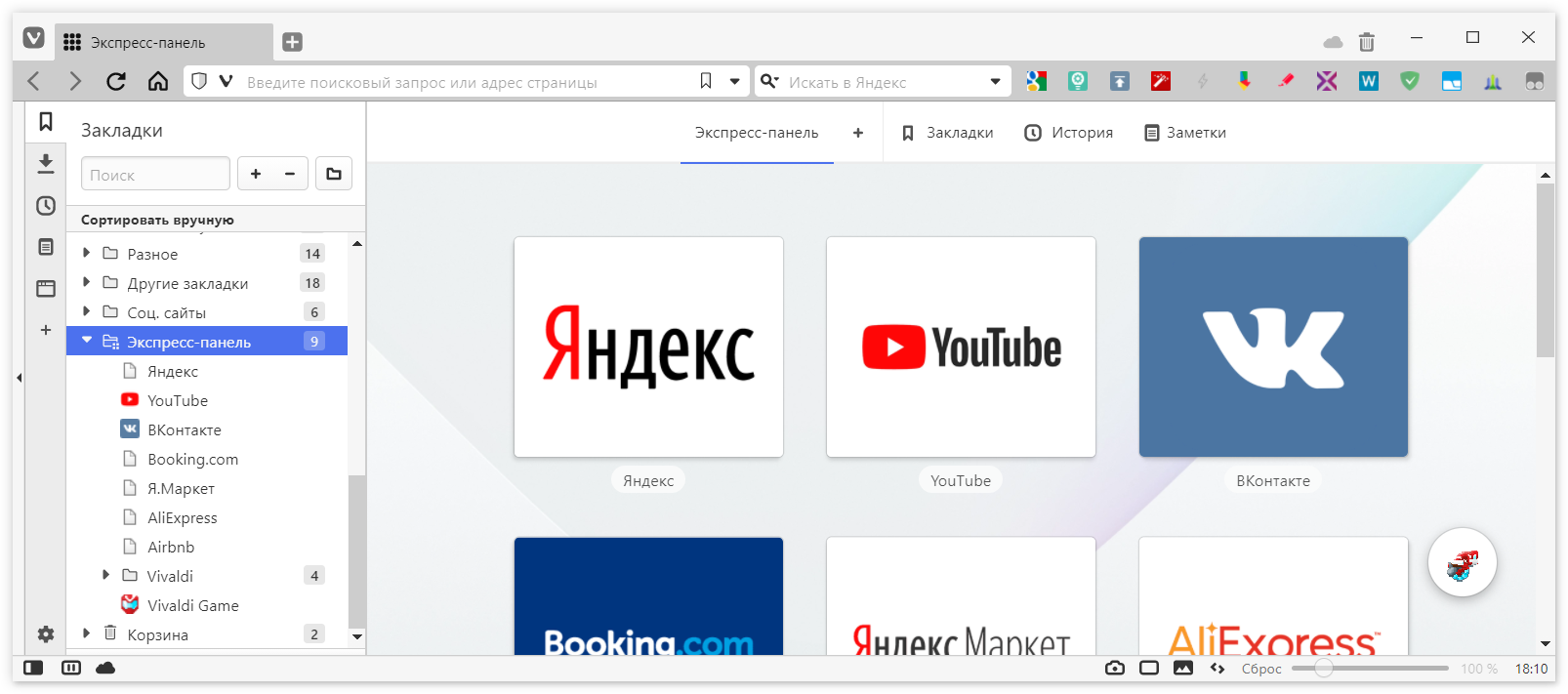 Ещё бы экспресс-панель не лезла в закладки (совсем) совсем было бы хорошо. А так закладки просто дублируются и в закладках и экспресс-панели..