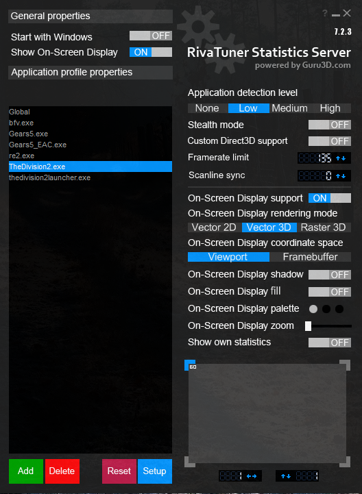 Друзья, выставляю лок фпс через Riva Tuner в The Division 2@dx12, а он не работает. Вроде все делаю правильно - добавляю профиль с .exe, выставляю нужное значение, в игре всинк и лок отключен, а счетчик показывает, что фпс разблокирован...